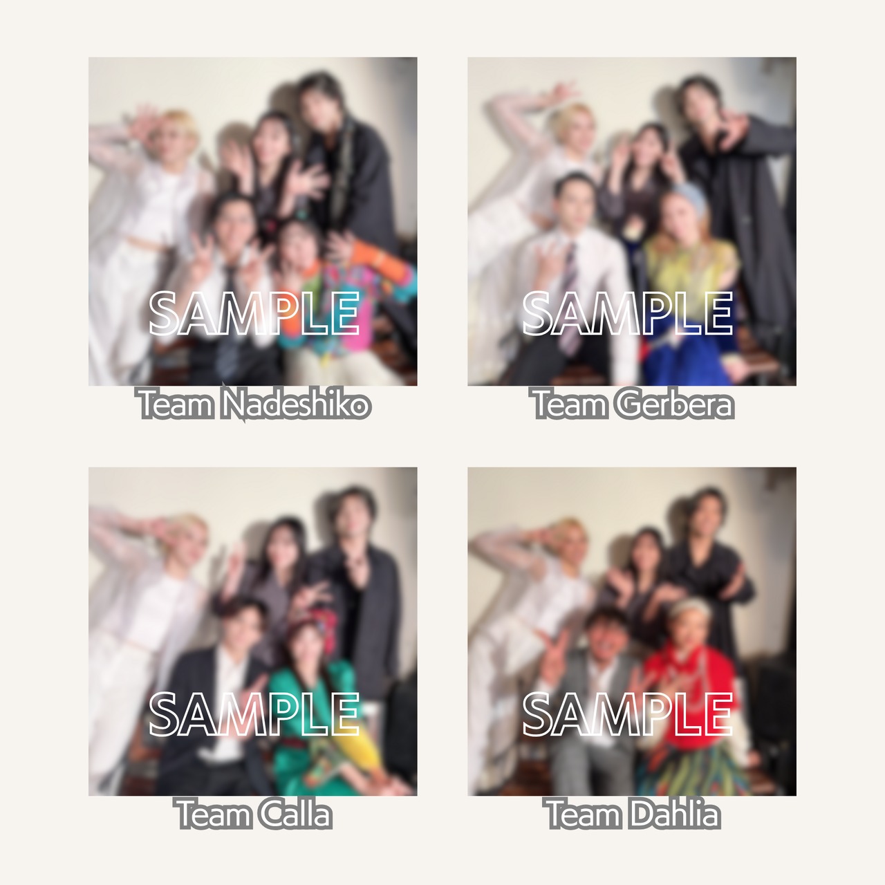 通しキャスト+日替わりキャスト 計5名の集合チェキとなります。計4種類。